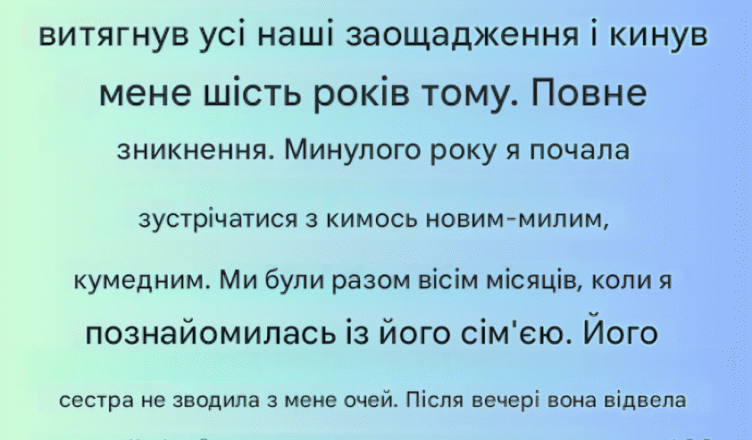 Шість років тому мій колишній чоловік змінив мені, спустошив наші заощадження і зник — повністю зник з радарів. Минулого року я почала зустрічатися з новою людиною. Добрий, щирий, кумедний — ми були разом вісім місяців, перш ніж я познайомилась із його сім’єю. Його сестра дивно дивилася на мене. Після вечері вона відвела мене вбік і запитала, чи не була я колись одружена з людиною на ім’я Грег. Виявляється, мій колишній тепер одружений з однією з її близьких подруг. Яка ймовірність?