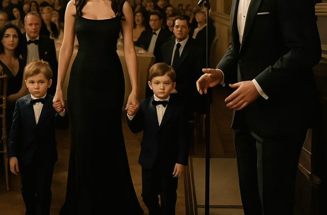 Одягнена в просту чорну сукню, волосся зачесане назад, без блискіток, без діамантів. Тільки впевненість — і двоє п’ятирічних хлопчиків йдуть поруч зі мною в однакових темно-синіх костюмах.