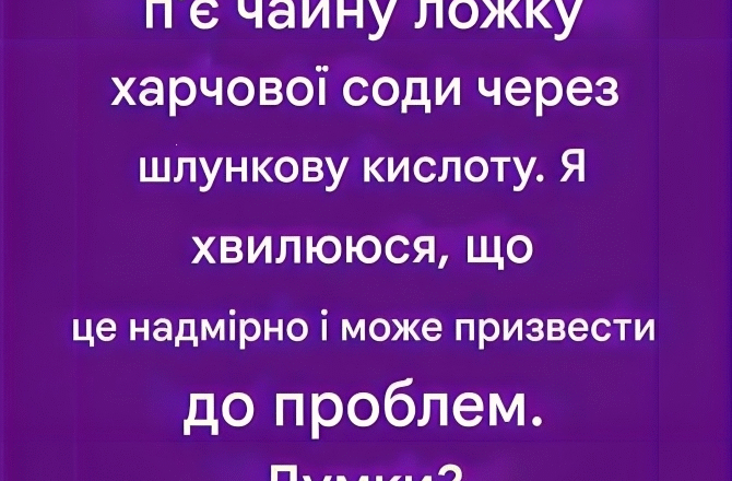 Під час цієї реакції виділяється вуглекислий газ, що може призвести до набряків та відчуття здуття живота. Хоча це може заспокоїти дискомфорт на мить, насправді це не усуває першопричину кислотного рефлюксу.