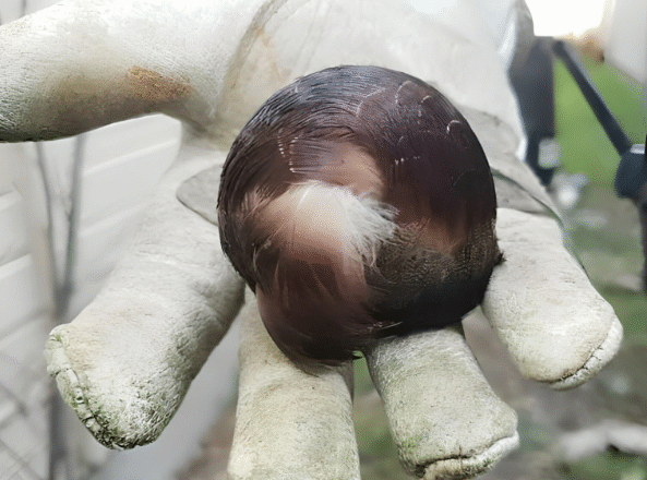 Дослідивши місцевість, вони виявили на землі дивне утворення, вкрите пір’ям.