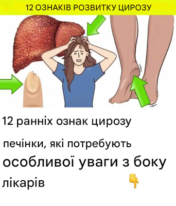 Κ️ Цироз печінки: підступний вбивця в тіні Κ️️❤️ Уявіть: всередині вас живе непроханий гість. Він не шумить, не дає про себе знати, не кидає істерики. Він просто виконує свою роботу — повільно, прохолодно і нещадно, знищуючи один з найважливіших органів — печінку. Це не сценарій трилера, а реальність під назвою цироз печінки. Хвороба, яка роками може ніяк не проявлятися, але одного разу переверне життя з ніг на голову. 🧬Що таке цироз? Цироз печінки — є завершальною стадією хронічного ураження печінки, при якому нормальні клітини замінюються рубцевою тканиною. Ніби гарний і живий сад перетворюється на суху, безплідну пустелю. 🧨 Печінкова недостатність 💉 Внутрішня кровотеча 🦠 Рак печінки 🪦 Фатальний результат 🤔 Як це виглядає? Все починається з, здавалося б, нешкідливих звичок:🍩 Надлишок цукру 🍕 Жирні продукти 🥂 Часте вживання алкоголю 💊 Зловживання наркотиками 🦠 Гепатит B і З часом розвивається стеатоз (жирова інфільтрація), потім — фіброз і, нарешті, циро 🚨 15 ранніх симптомів, які не можна ігнорувати 1. 🔹 Судинні зірки — червоні павутиння на шкірі 2. 🔹 Жовтяниця шкіри та очей — проблеми білірубіну 3. 🔹 Почервоніння долонь — erythema palmaris 4. 🔹 Здуття живота — асцит, накопичення рідини 5. 🔹 Збільшення грудей у чоловіків — надлишок естрогенів 6. 🔹 Крихкі нігті — дефіцит харчування 7. 🔹 Xanthomas — жирові бляшки на повіках 8. 🔹 Набряк — особливо в нижній частині ніг 9. 🔹 Плями та синці без причини — розлад згортання крові 10.🚨 15 Ранні симптоми, які не можна ігнорувати 1. 🔹 Судинні зірки — червоні павутиння на шкірі 2. 🔹 Жовтяниця шкіри та очей — проблеми білірубіну 3. 🔹 Почервоніння долонь — erythema palmaris 4. 🔹 Здуття живота — асцит, накопичення рідини 5. 🔹 Збільшення грудей у чоловіків — надлишок естрогенів 6. 🔹 Крихкі нігті — дефіцит харчування 7. 🔹 Xanthomas — жирові бляшки на повіках 8. 🔹 Набряк — особливо в нижній частині ніг 9. 🔹 Плями та синці без причини — розлад згортання крові 10.🚨 15 Ранні симптоми, які не можна ігнорувати 1. 🔹 Судинні зірки — червоні павутиння на шкірі 2. 🔹 Жовтяниця шкіри та очей — проблеми білірубіну 3. 🔹 Почервоніння долонь — erythema palmaris 4. 🔹 Здуття живота — асцит, накопичення рідини 5. 🔹 Збільшення грудей у чоловіків — надлишок естрогенів 6. 🔹 Крихкі нігті — дефіцит харчування 7. 🔹 Xanthomas — жирові бляшки на повіках 8. 🔹 Набряк — особливо в нижній частині ніг 9. 🔹 Плями та синці без причини — розлад згортання крові 10.🔹 Xanthomas — жирові бляшки на повіках 8. 🔹 Набряк — особливо в нижній частині ніг 9. 🔹 Плями та синці без причини — розлад згортання крові 10.🔹 Xanthomas — жирові бляшки на повіках 8. 🔹 Набряк — особливо в нижній частині ніг 9. 🔹 Плями та синці без причини — розлад згортання крові 10.