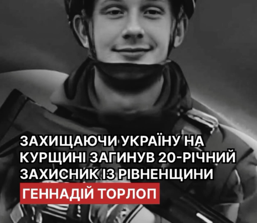 На курщині загинув 20-річний український воїн Геннадій Торлоп із Рівненщини. Захисник із вересня 2023 року боронив Україну від російських окупантів.