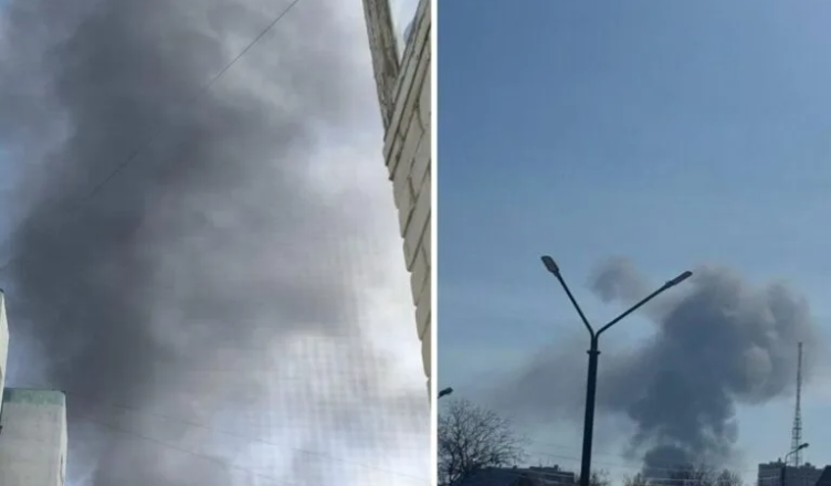 - Над самим містом та над найближчими населеними пунктами підіймається чорний дим.