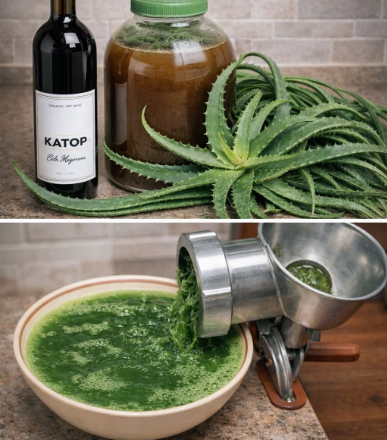 Вона взяла листя двох рослин алоє віком 4–5 років, які не поливали протягом 5 днів перед зрізанням. Листя промила, зняла шипи і пропустила через м’ясорубку. Вийшло близько 2 літрів м’якоті. Додала 3 кг меду і 2 пляшки кагора. Все ретельно перемішала в емальованій посудині, перелила в банки, загорнула в темну тканину та поставила в підпол.