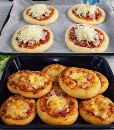 Готові ароматні міні-піци трохи охолоджуємо й подаємо до столу.