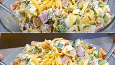Рецепт простого, але дуже апетитного та смачного салату з шинкою або копченою ковбасою, свіжими овочами та зеленню. Просто спробуйте зробити на вечерю. Для