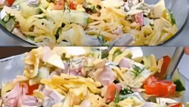 Рецепт простого, але дуже апетитного та смачного салату з шинкою або копченою ковбасою, свіжими овочами та зеленню. Просто спробуйте зробити на вечерю. Для
