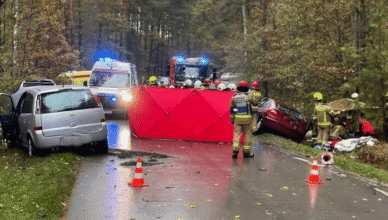 Трагічна аварія в Людвінові (Свєнтокшиське воєводство). Двоє людей загинули та одна отримала травми внаслідок лобового зіткнення двох легкових автомобілів на повітовій дорозі в